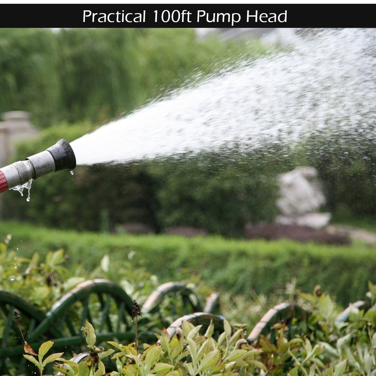 Power: 120V Watt: 1200 W Max Flow Rate: 1000 Gallon Per Hour Max Lift: 150 Feet Max Suction Height: 26 feet Dia. of pipe: 1" Hose Fitting: 1" length of cable:4 feet; UL PLUG Package included: 1 x Garden pump