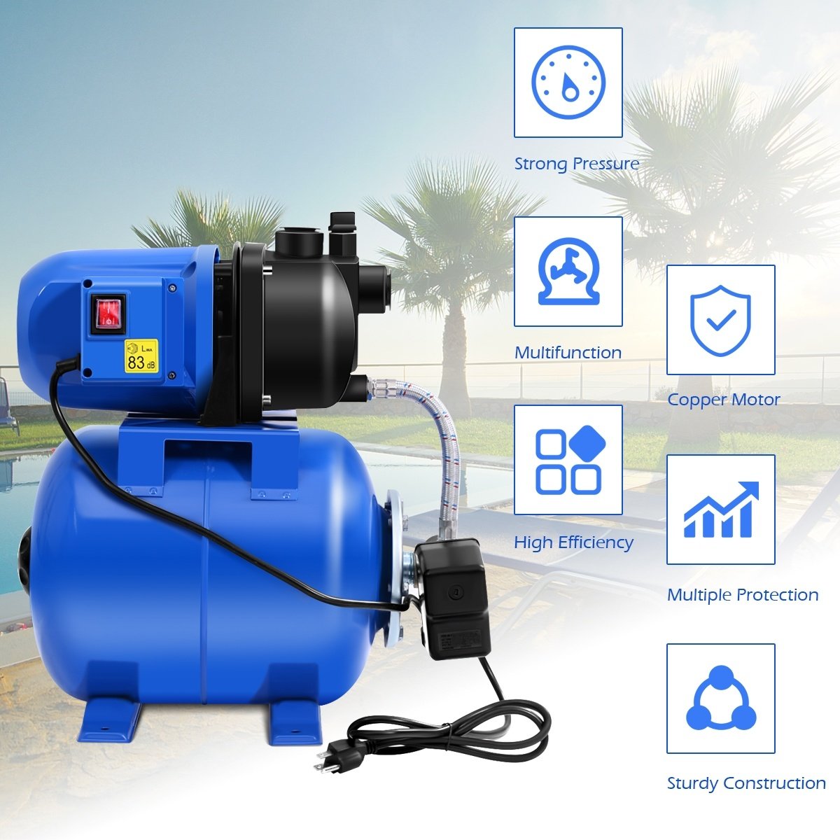 This is pressurized water booster pump which is perfect for transferring water from wells or water reservoirs to upper stories of building.   This water pressure pump gives homes several times more pressure in their water pipes for better showers cleaning. It’s perfect for draining add water pressure to houses and garden.   If you are looking for it don't hesitate to buy it!   Brand new and Good Quality Designed and manufactured in line with the valid safety requirements has a lift rating of 150 feet 150 foot head lift provides enough water and pressure for a magnitude of jobs 1000 Gallon Per Hour rating tackles any draining job at a fraction of the time 1" hose fittings
