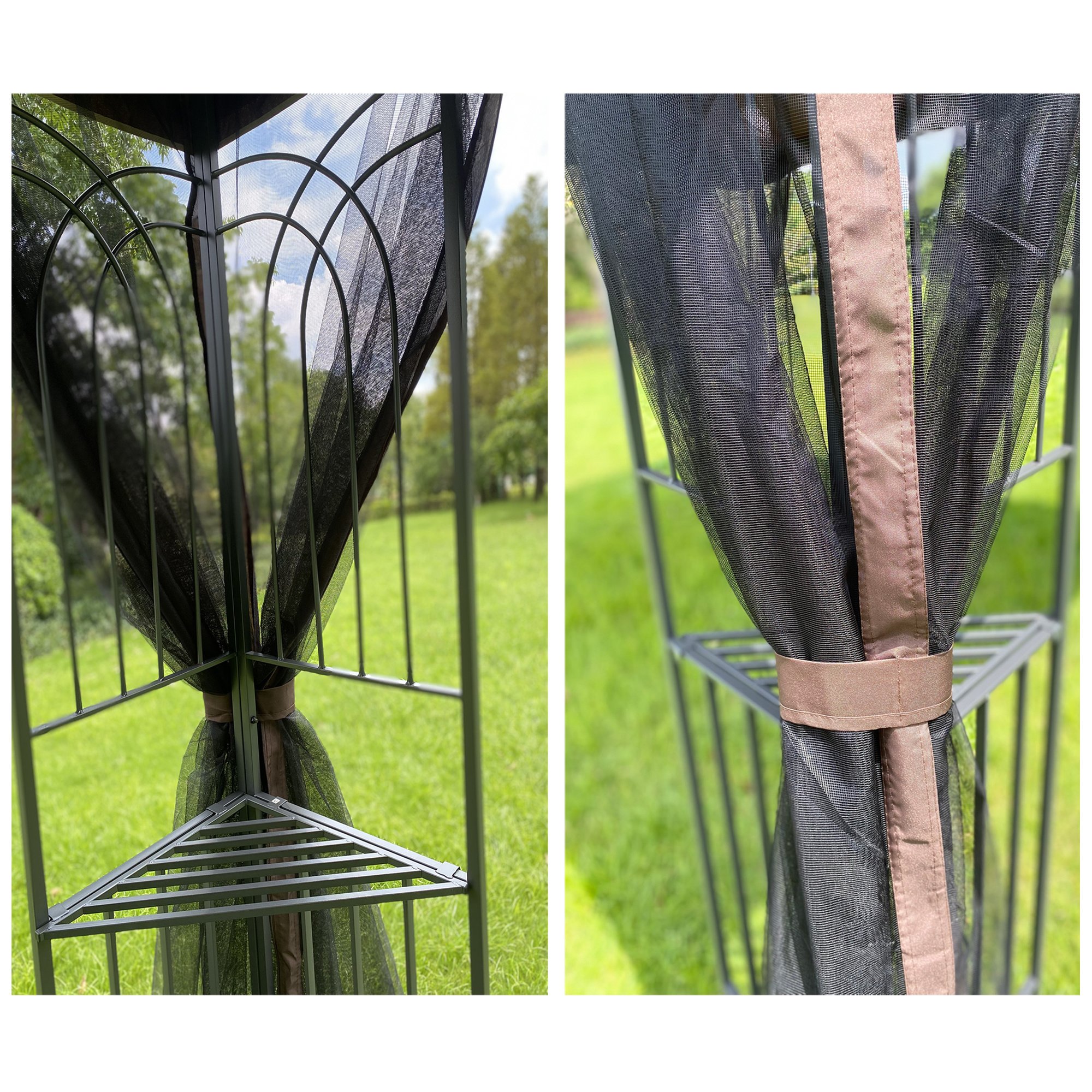 [Removable Mesh]The gazebo is equipped with four-sided mesh, which prevents outdoor insects from entering the tent and keeps the air flowing.You can also remove the mesh when you don't need it.