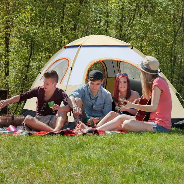 Spacious and Comfortable: Our camping tents are designed to provide a convenient and comfortable family outdoor camping experience.4 person double door, spacious and comfortable space can easily accommodate multiple people.