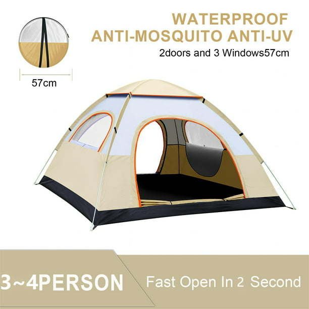 Two Doors and Three Windows:The tent comes with 2 large double zippered doors and mesh windows, allowing you to sit inside for fresh air and a great view. The mesh windows also prevent mosquito bites and protect your privacy.