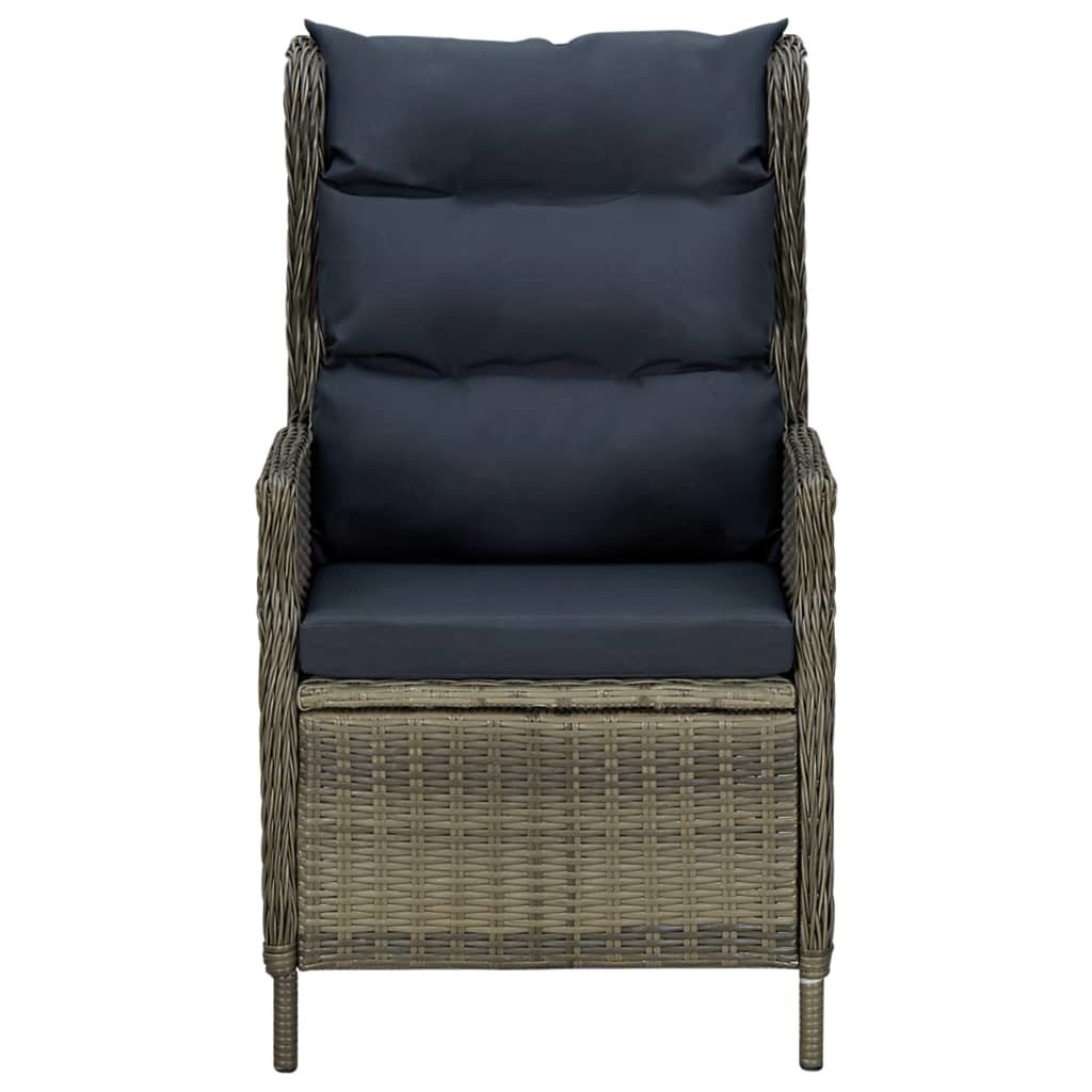 The practical outdoor dining set has a steel frame; making it strong and sturdy. The garden reclining chairs are made of water-resistant and maintenance-free PE rattan; making them perfect for outdoor use. The thickly padded cushions add extra comfort in your dining time. The cushion cover is equipped with a zip; removable and washable. Thanks to the gas lift mechanism; the backrest is also adjustable to fit your positions. By touching the button on the side; the backrest can recline; for a comfortable position. In addition; the smooth glass tabletop is easy to clean with a damp cloth and excellent for placing meals; drinks and other decorative items.