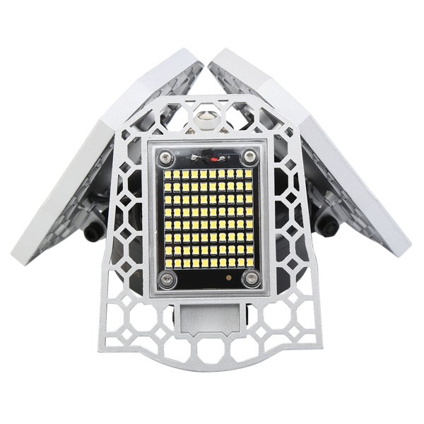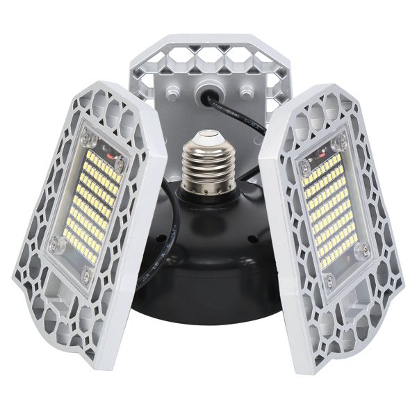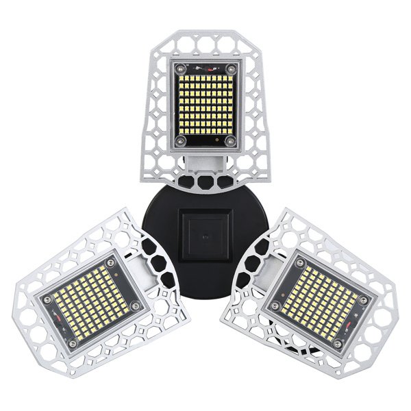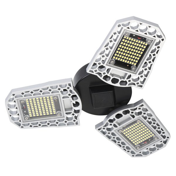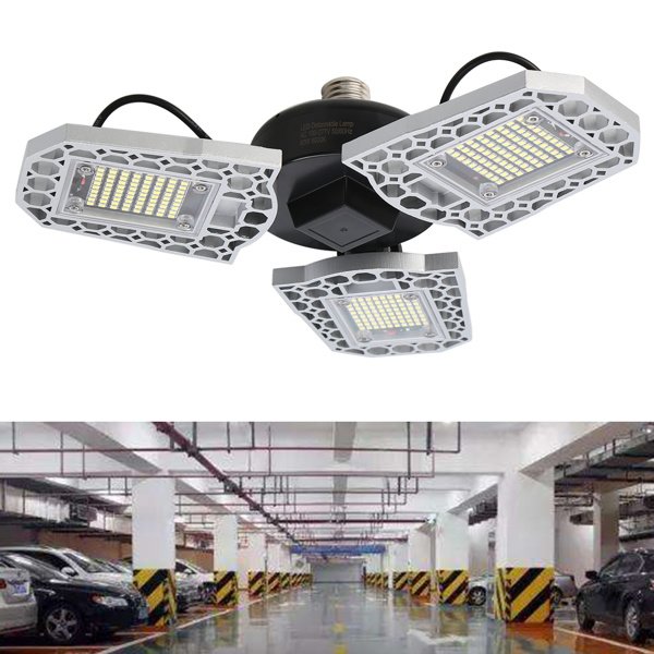 This garage light has 3 panels that can be adjusted up and down to change the lighting area as needed. This garage light adopts high quality LED lamp beads; power 65W; lumen 7200LM; bright to meet your lighting needs. The color temperature is cold white 6500K; which makes the illuminated area appear brighter and clearer. It can be widely used in garage; basement; workshop; storage room; warehouse; streets; courtyards; corridors; supermarkets; factories; underground parking and other places.