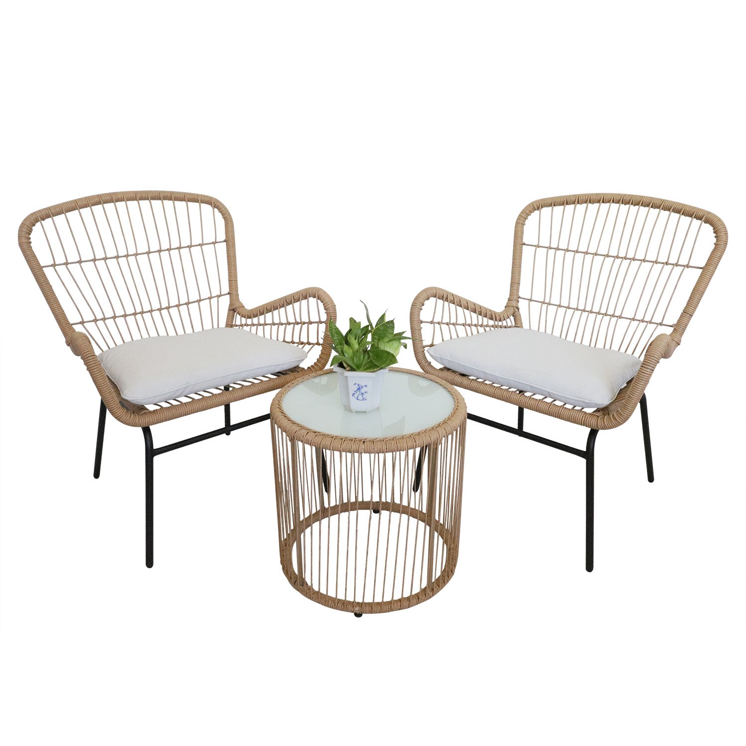 | Product Name | Balcony Furniture; 3 Piece Patio Set; Outdoor Wicker Chairs with Glass Top Table and Soft Cushion; Rattan Front Porch Furniture |