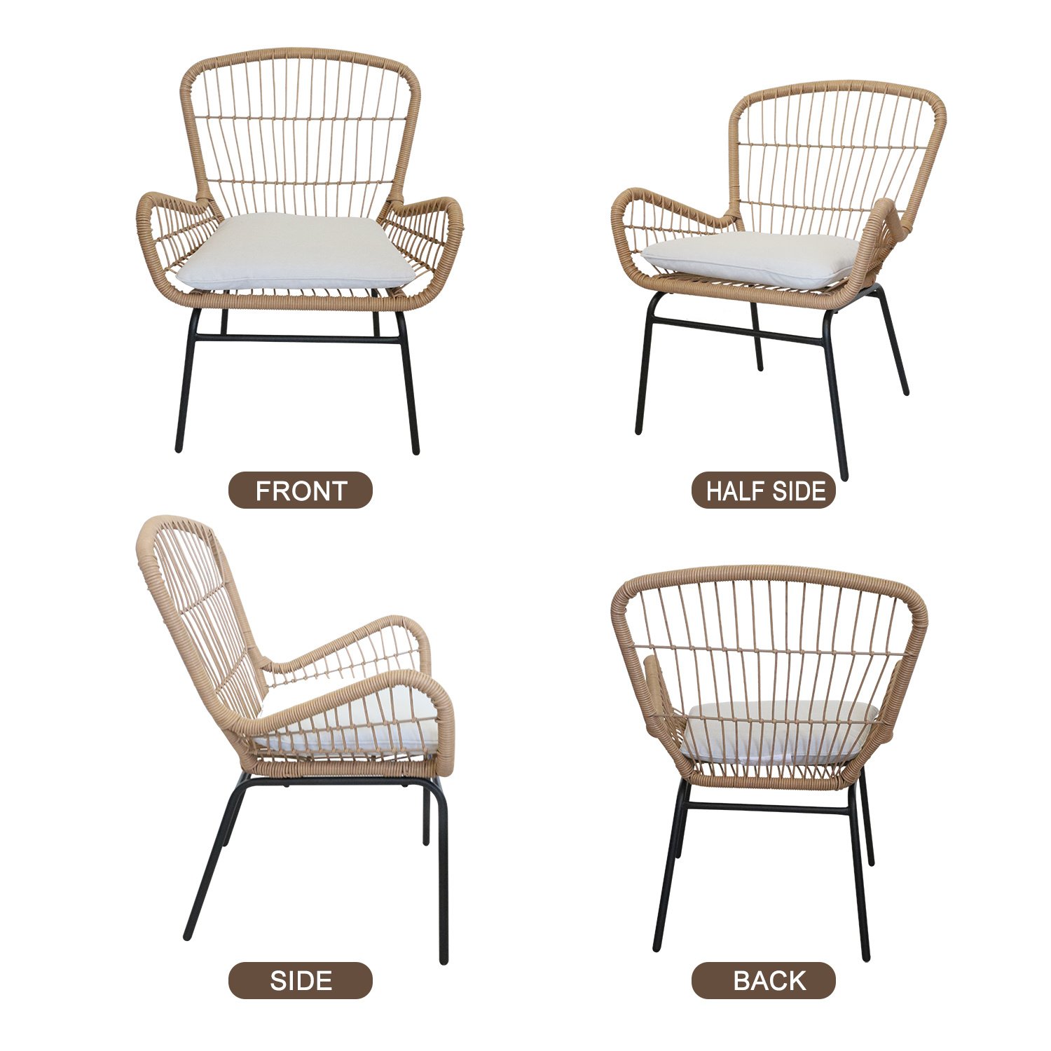 3.[More Comfortable] Compared with traditional balcony furniture, our wicker chairs' back is wider, which can hold your whole body. Breathable polyester sponge cushion can maintain high resiliency, thicked material makes you own comfortable feeling. Without doubt, the outdoor furniture will add some fun to your free time.