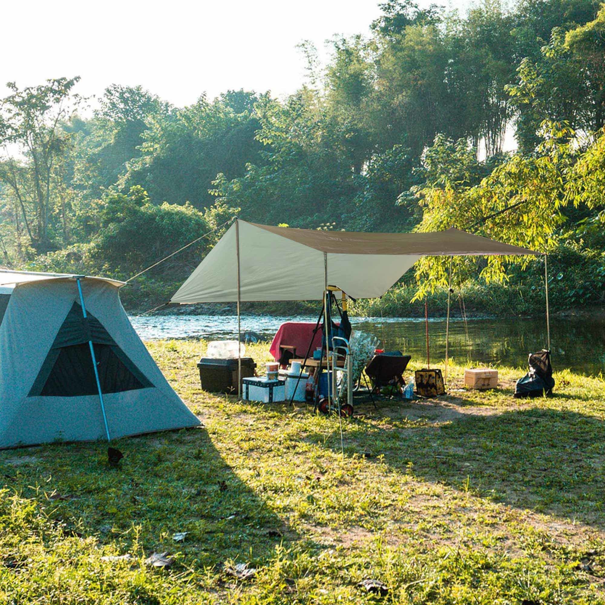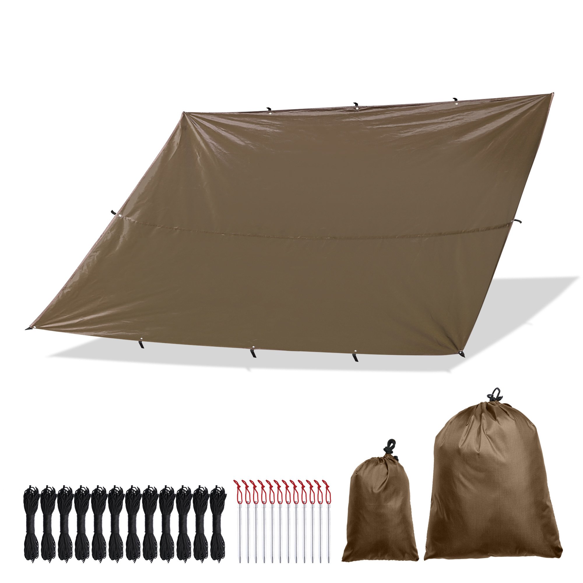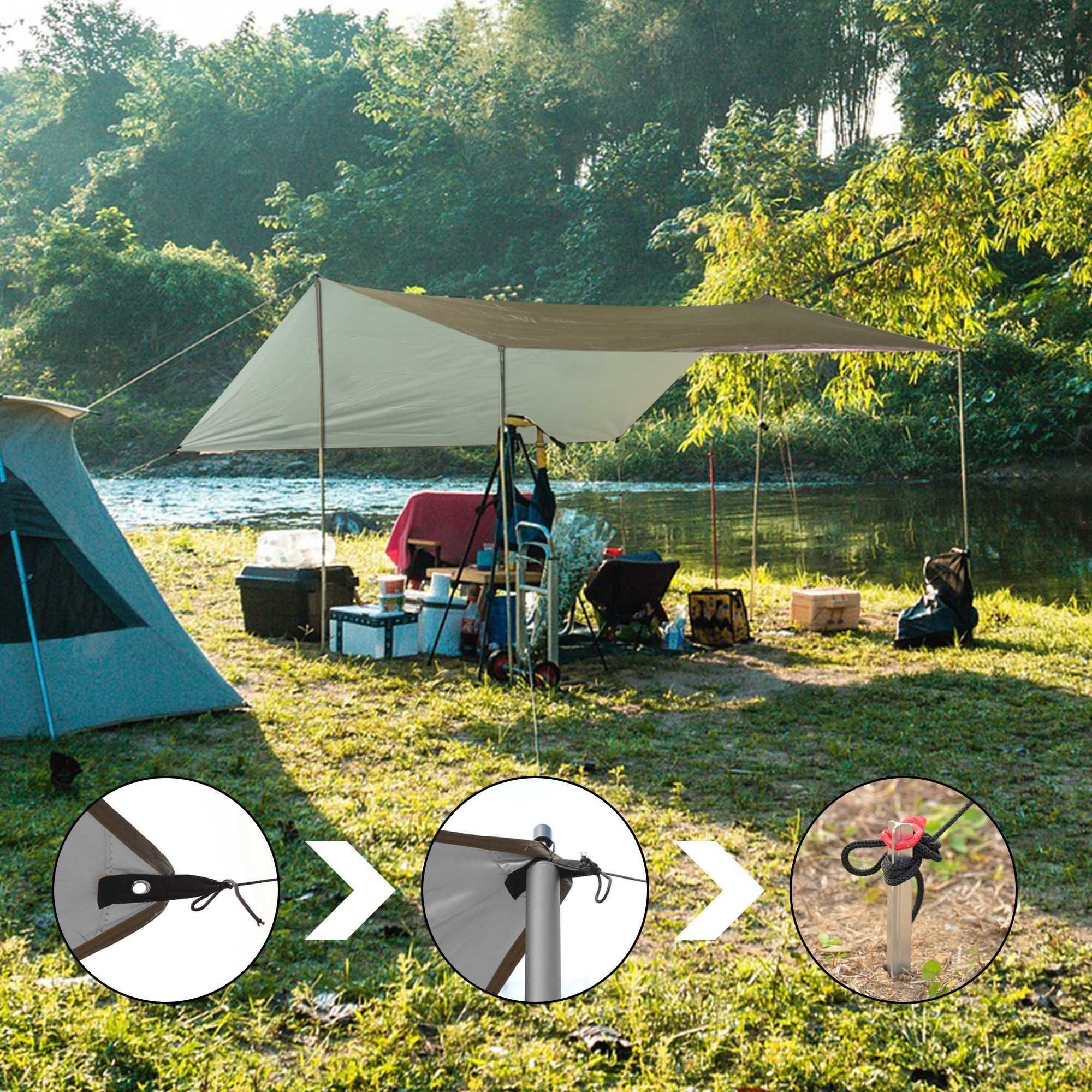 - UV Protection & Water Resistance - Made of 210D oxford fabric with silver PA coating; the tarp offers UV50+ protection for protecting you from sunlight; avoiding sunburn and reducing temperature in hot summer; shelter with PU3000mm water resistance is suitable for using on drizzling days; durable material ensures wear resistance and tear resistance for frequent use
