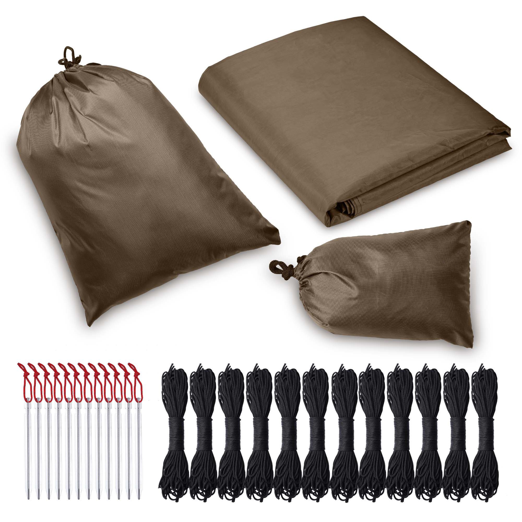 - Complete Accessories - Everything you need for tarp installation is included in the package; including 12 aluminum alloy stakes; 12 guy lines and 2 carrying bags
