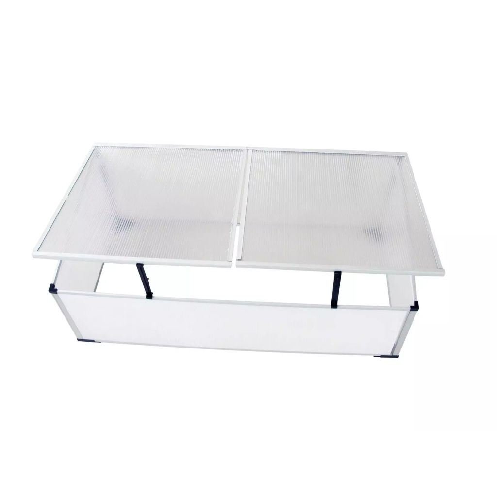 This material is transparent. The cold frame is heat; form and impact resistant and highly durable. The material is also UV-resistant and will save up to 40% more warmth in comparison to glass. The cold frame is able to withstand temperatures ranging from -25°C up to +60°C. During winter you can use this mini-greenhouse to protect your young plants or seeds against frost. During the summer; you can increase the harvest time. You yourself create and control the amount of light; air; heat and humidity.