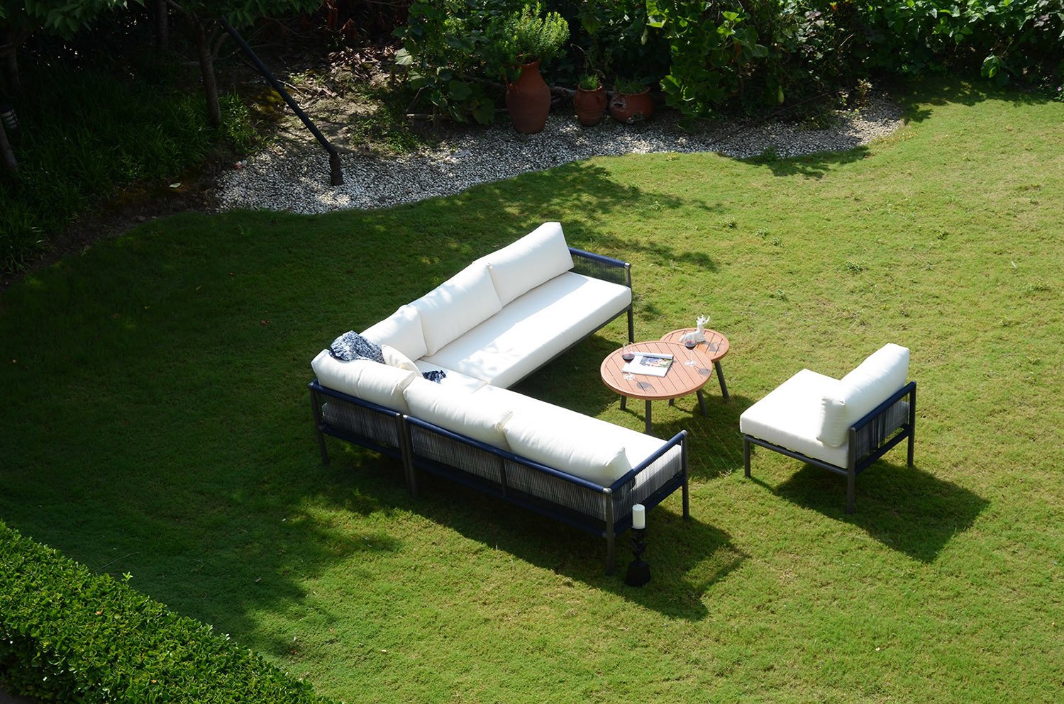 One rope weave alu sofa set=two end sofa+ one middle sofa+ one corner sofa+ two coffee table