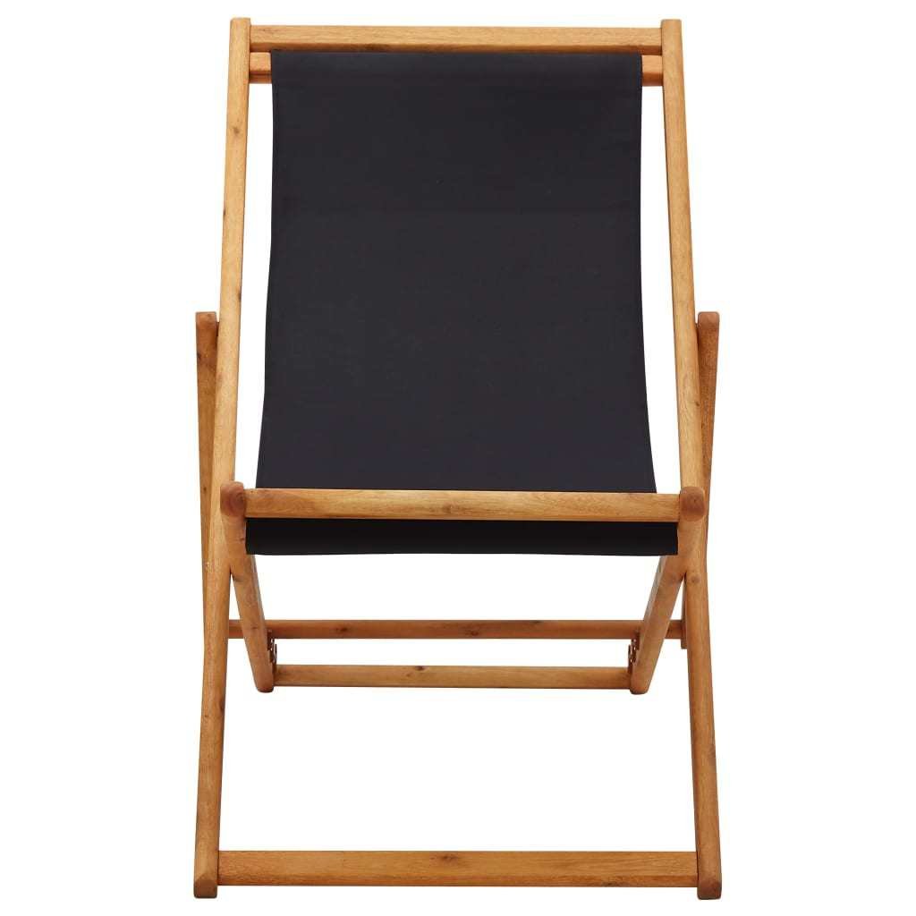Folding Beach Chair Eucalyptus Wood and Fabric Black
