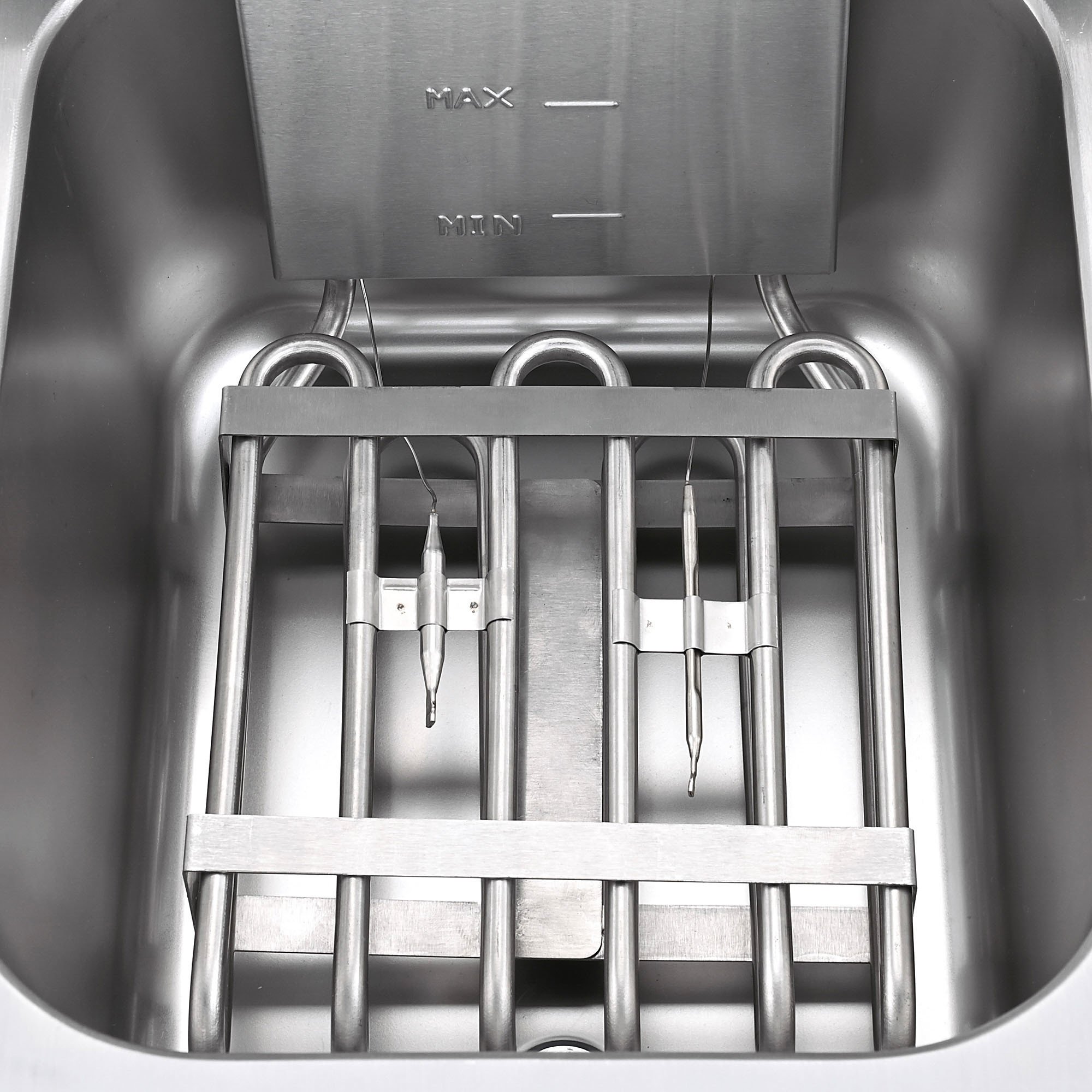 - Easy to Clean - Features an overall stainless steel construction and a liftable heating tube for effortless cleaning and maintenance; along with a lid which prevents spilling of boiling oil over the top; a residue net to filter out the dregs; a drain tap for releasing and draining used oil