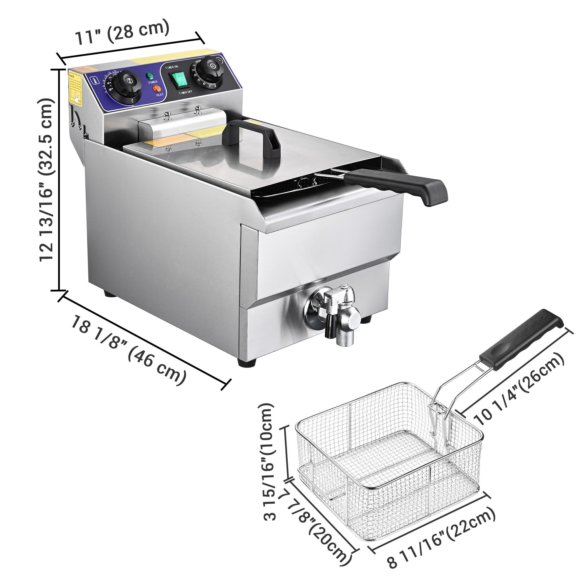 - Large Capacity - This WeChef Commercial Electric Deep Fryer comes with an upgraded tight-sealing oil tank with a recommended oil capacity of up to 6L; along with a frying basket that can hold about 5 pairs of wings or 3Lbs chips; perfect for frying a wide variety of food items for homecooked meals; family gatherings; and small businesses