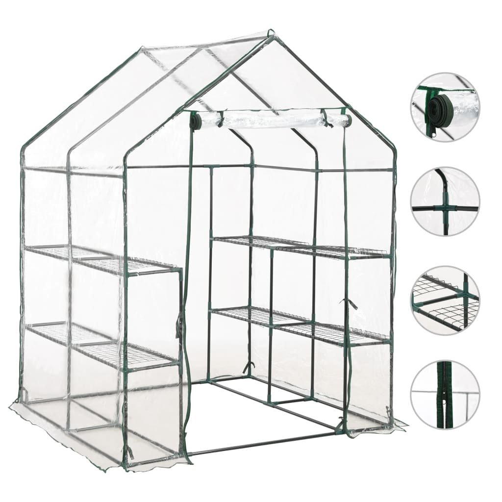 1.Greenhouse with 8 Shelves 4.7'x4.7'x6.4'