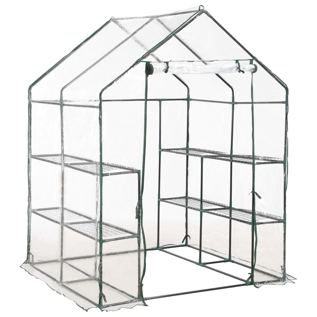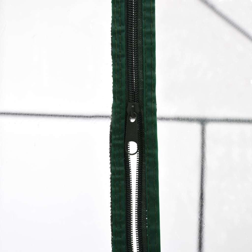This greenhouse is structured with rust-resistant sturdy steel frame and PVC film; which ensures superior durability and for long-lasting use. Constructed with 8 wired shelves (4 on each side); this greenhouse provides ample space for your sprouting plants; blooming flowers and fresh herbs and vegetables. The transparent plastic cover allows sunlight to reach the flowers and plants; also you can monitor your plants all the time. Designed with zippered roll-up door; it ensures well air circulation and easy access to your plants.