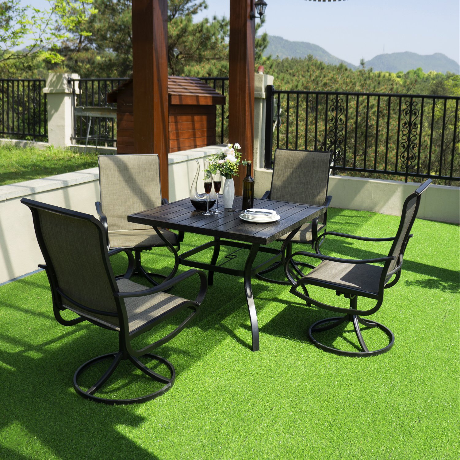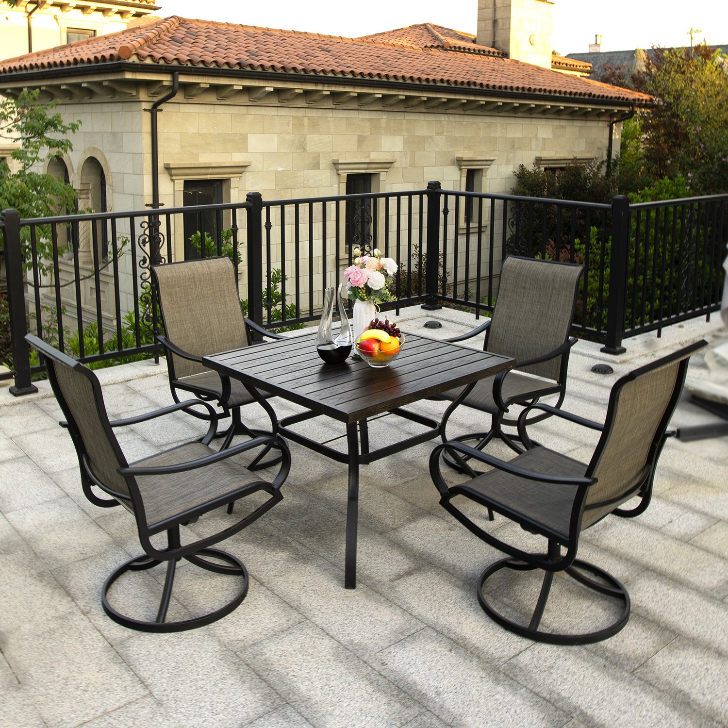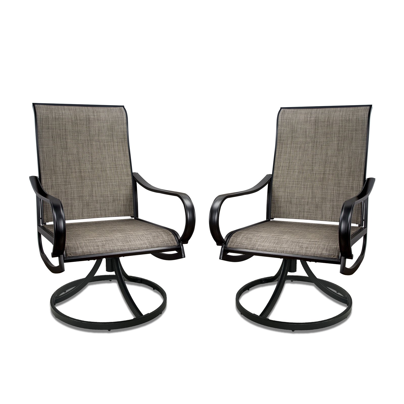 MEOOEM outdoor swivel chairs are sturdily constructed and made of high quality fabric and metal; with simple design style and ergonomically designed backrest to give you a comfortable feeling; they will be an excellent decoration in your yard.