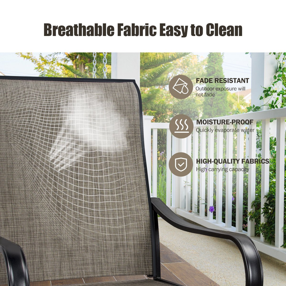 1.360 Degree Swivel: MEOOEM outdoor swivel dining chair supports 360 degree rotation and slight swaying, smooth rotation function is convenient for you to chat with others or fetch things, you can sit on the chair and relax yourself with slight swaying.