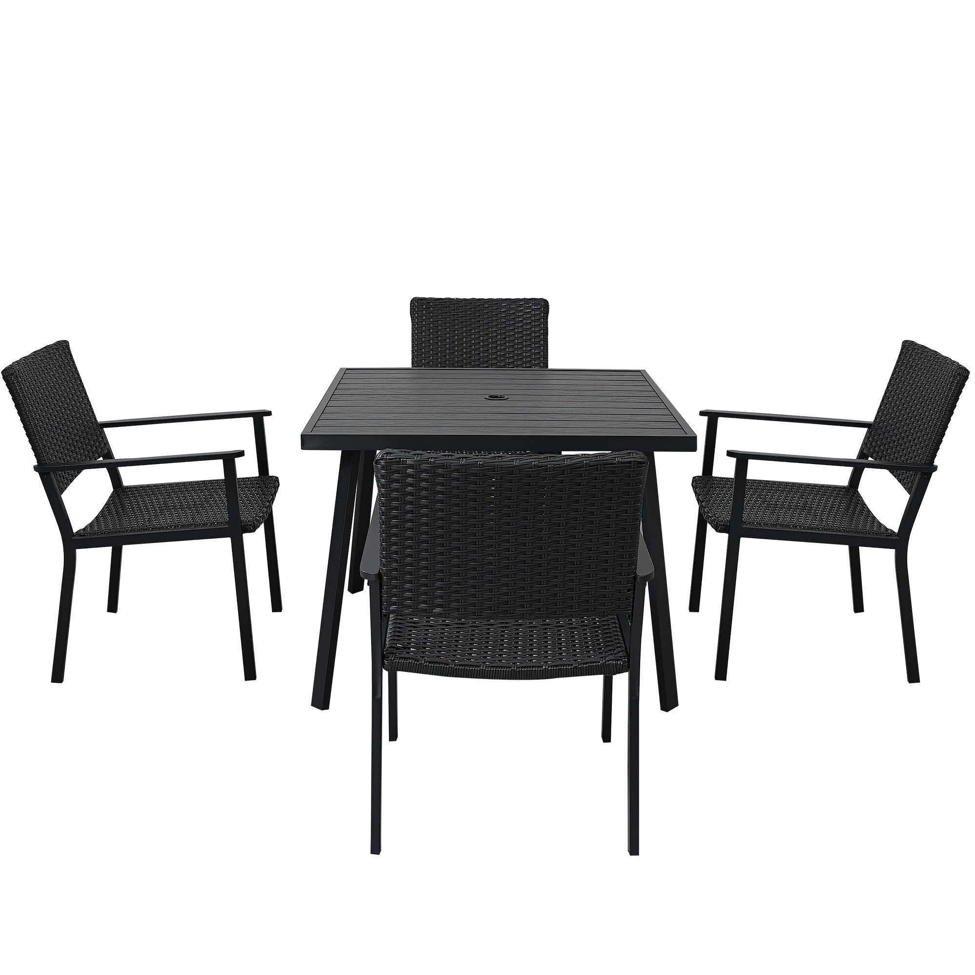 Outdoor Patio PE Wicker 5-Piece Dining Table Set with Umbrella Hole and 4 Dining Chairs for Garden, Deck,Black Frame+Black Rattan Outdoor Patio PE Wicker 5-Piece Dining Table Set with Umbrella Hole and 4 Dining Chairs for Garden, Deck,Black Frame+Black Rattan Outdoor Patio PE Wicker 5-Piece Dining Table Set with Umbrella Hole and 4 Dining Chairs for Garden, Deck,Black Frame+Black Rattan Outdoor Patio PE Wicker 5-Piece Dining Table Set with Umbrella Hole and 4 Dining Chairs for Garden, Deck,Black Frame+Black Rattan Outdoor Patio PE Wicker 5-Piece Dining Table Set with Umbrella Hole and 4 Dining Chairs for Garden, Deck,Black Frame+Black Rattan Outdoor Patio PE Wicker 5-Piece Dining Table Set with Umbrella Hole and 4 Dining Chairs for Garden, Deck,Black Frame+Black Rattan Outdoor Patio PE Wicker 5-Piece Dining Table Set with Umbrella Hole and 4 Dining Chairs for Garden, Deck,Black Frame+Black Rattan Outdoor Patio PE Wicker 5-Piece Dining Table Set with Umbrella Hole and 4 Dining Chairs for Garden, Deck,Black Frame+Black Rattan Outdoor Patio PE Wicker 5-Piece Dining Table Set with Umbrella Hole and 4 Dining Chairs for Garden, Deck,Black Frame+Black Rattan Outdoor Patio PE Wicker 5-Piece Dining Table Set with Umbrella Hole and 4 Dining Chairs for Garden, Deck,Black Frame+Black Rattan Outdoor Patio PE Wicker 5-Piece Dining Table Set with Umbrella Hole and 4 Dining Chairs for Garden, Deck,Black Frame+Black Rattan Outdoor Patio PE Wicker 5-Piece Dining Table Set with Umbrella Hole and 4 Dining Chairs for Garden, Deck,Black Frame+Black Rattan Outdoor Patio PE Wicker 5-Piece Dining Table Set with Umbrella Hole and 4 Dining Chairs for Garden, Deck,Black Frame+Black Rattan Outdoor Patio PE Wicker 5-Piece Dining Table Set with Umbrella Hole and 4 Dining Chairs for Garden, Deck,Black Frame+Black Rattan Outdoor Patio PE Wicker 5-Piece Dining Table Set with Umbrella Hole and 4 Dining Chairs for Garden, Deck,Black Frame+Black Rattan Outdoor Patio PE Wicker 5-Piece Dining Table Set with Umbrella Hole and 4 Dining Chairs for Garden, Deck,Black Frame+Black Rattan Outdoor Patio PE Wicker 5-Piece Dining Table Set with Umbrella Hole and 4 Dining Chairs for Garden, Deck,Black Frame+Black Rattan