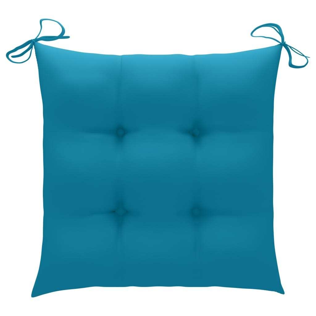 These garden chairs are made of solid acacia wood; a tropical hardwood; which is weather-resistant and durable for years of use. The oil finished surface is easy to clean with a damp cloth. The slatted design will bring a rustic charm. What's more; the included cushions provide extra comfort while seating. It is made of 100% polyester that has been treated to make it waterproof. Each cushion has two sets of ropes to fix it on the chair tightly.