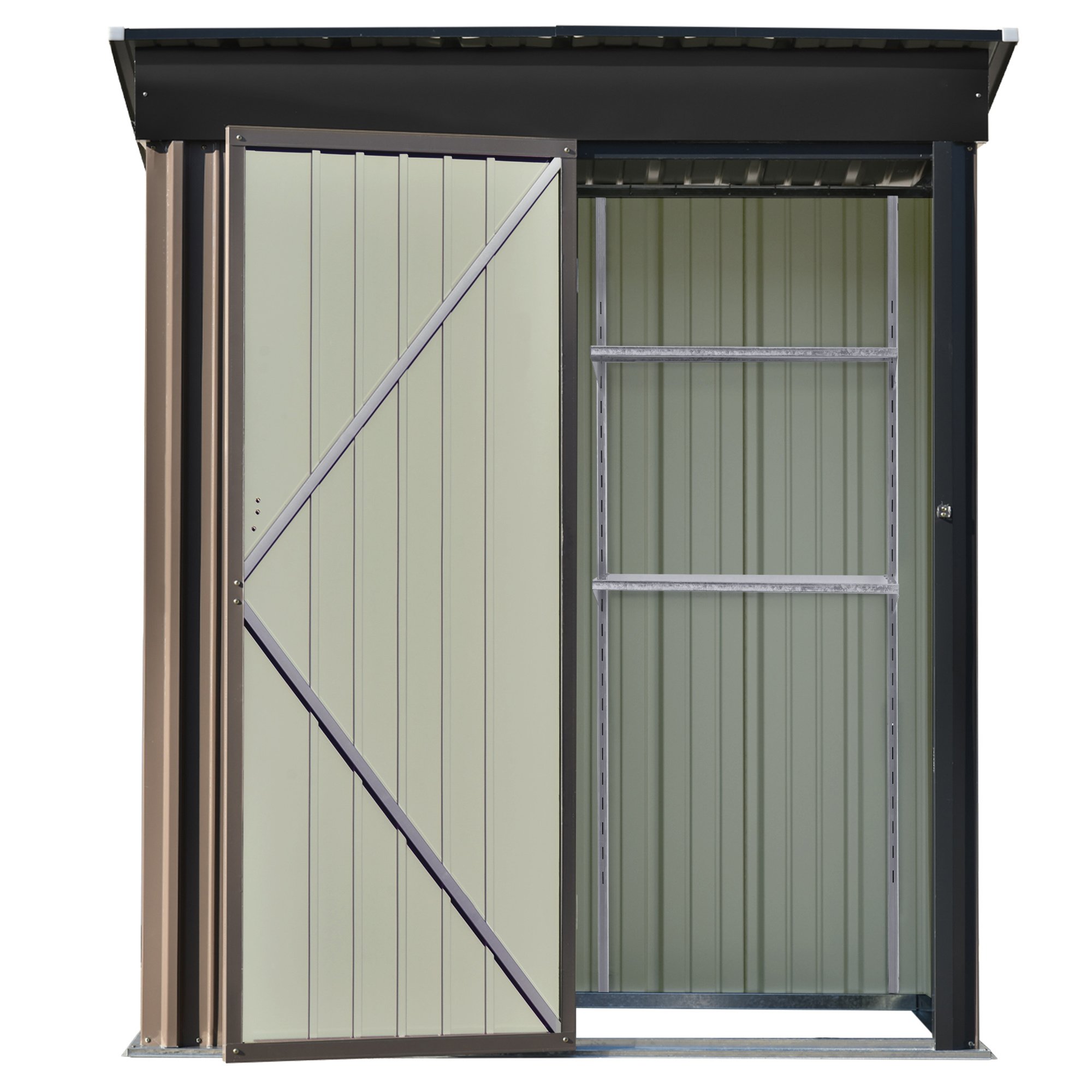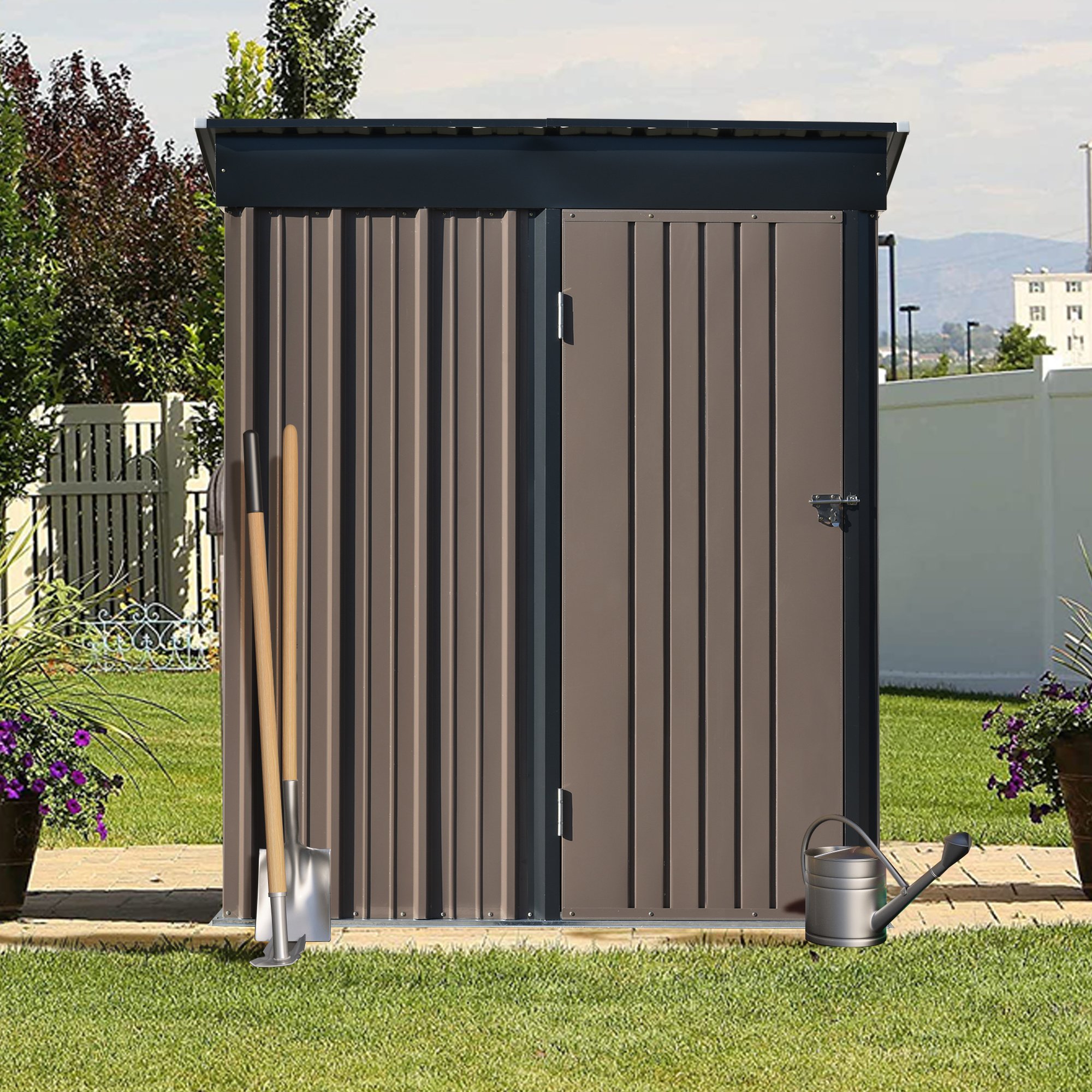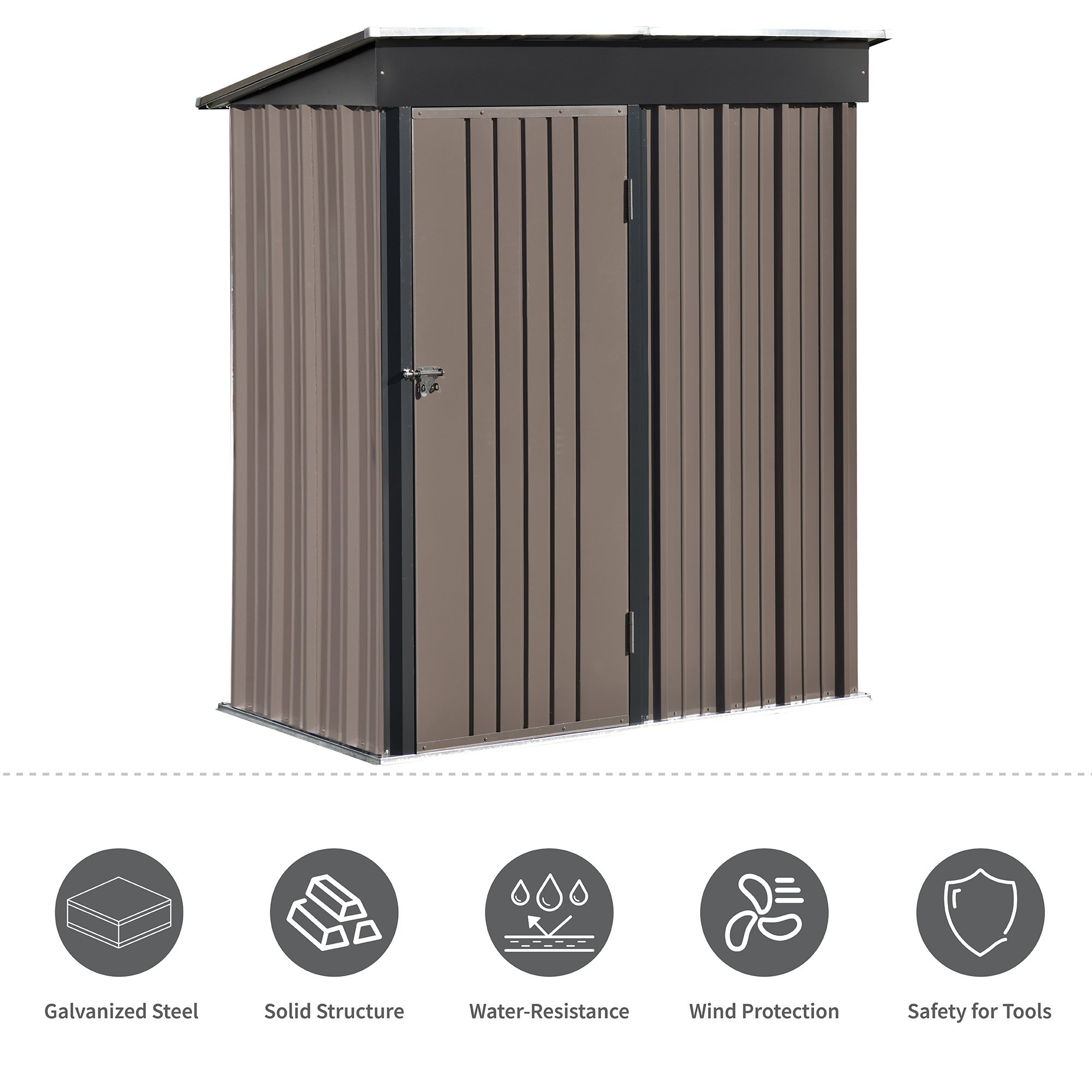 Patio 5ft Wx3ft. L Garden Shed; Metal Lean-to Storage Shed with Adjustable Shelf and Lockable Door; Tool Cabinet for Backyard; Lawn; Garden