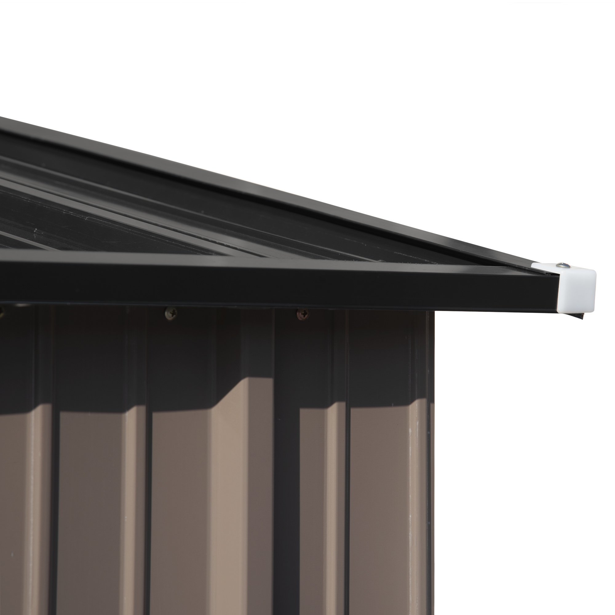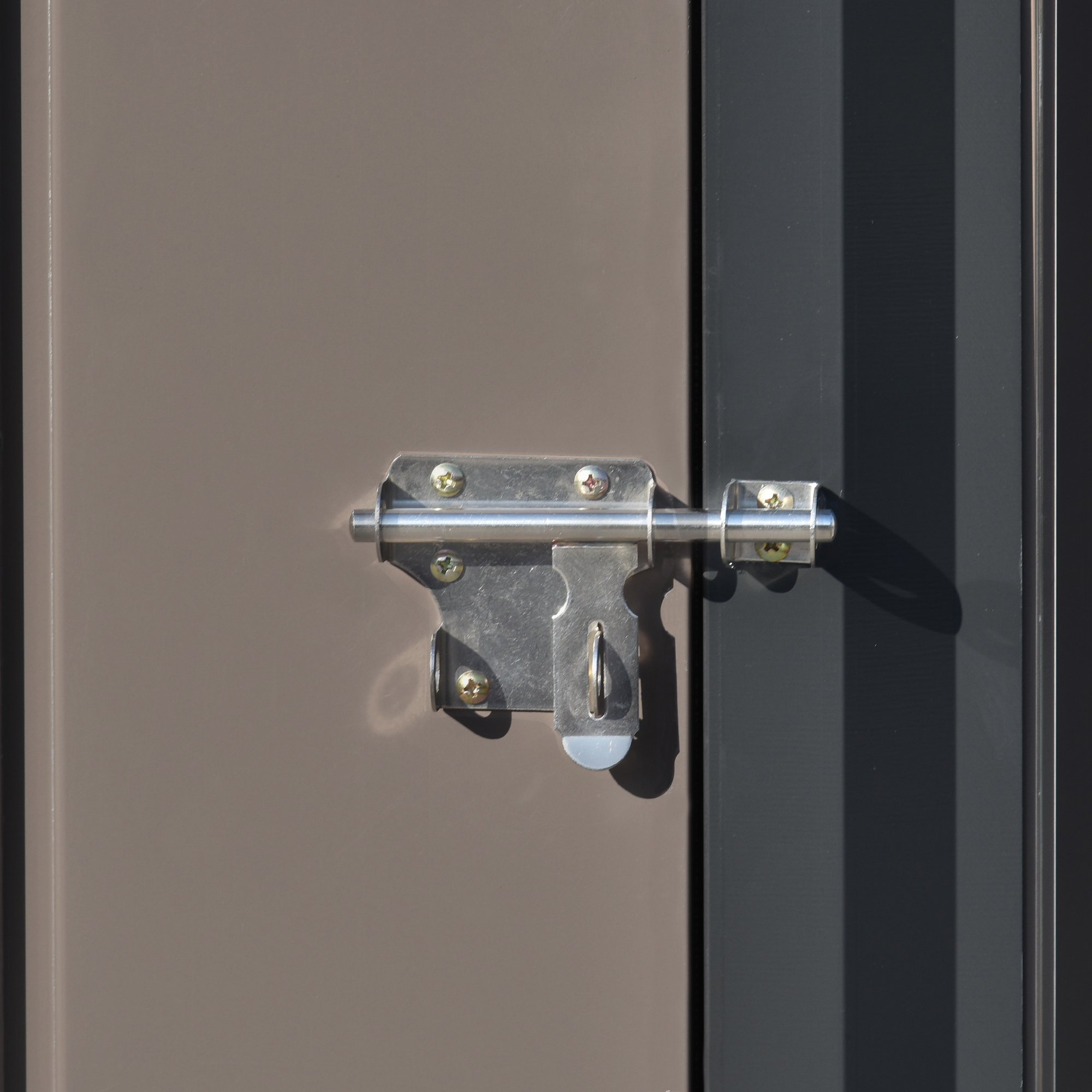 Compared with wooded storage shed; a metal shed is more durable with its galvanized steel material. Sloped roof is responsible for drainage and will help avoiding leakage or accumulation from the heavy rain or heavy snow effectively. Metal latch provides better safety and privacy for your tools or equipment.