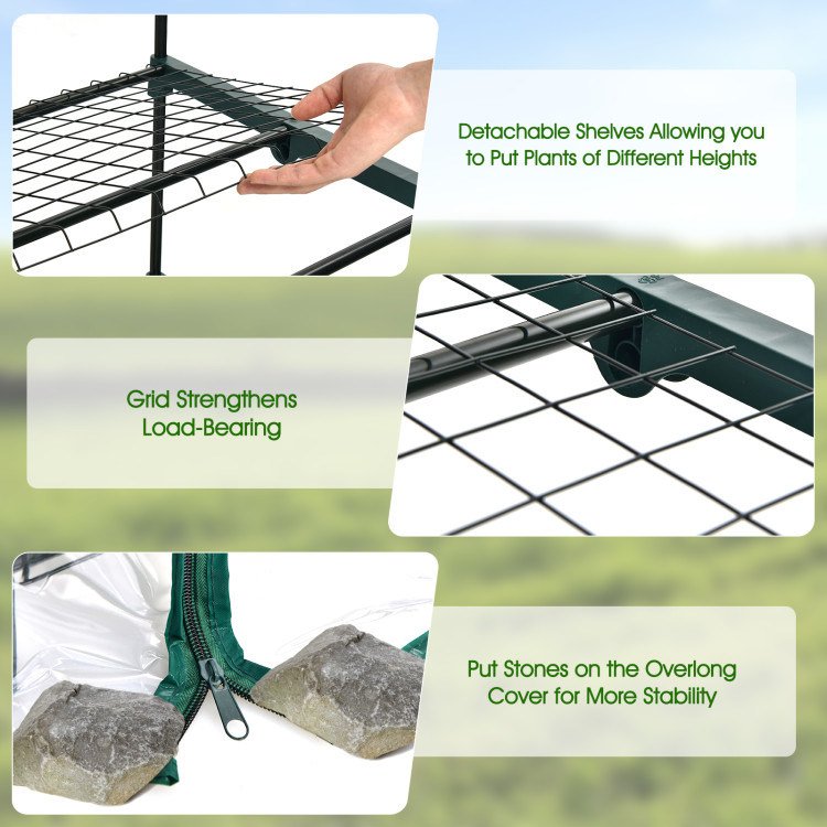 Durable and waterproof PE/PVC cover protect plants from rainy days.